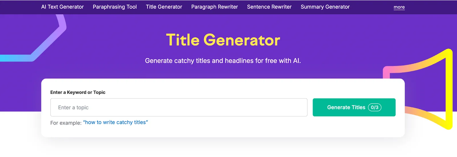 Best for: Bloggers, creators, and students who want fast and free title suggestions for any kind of content.