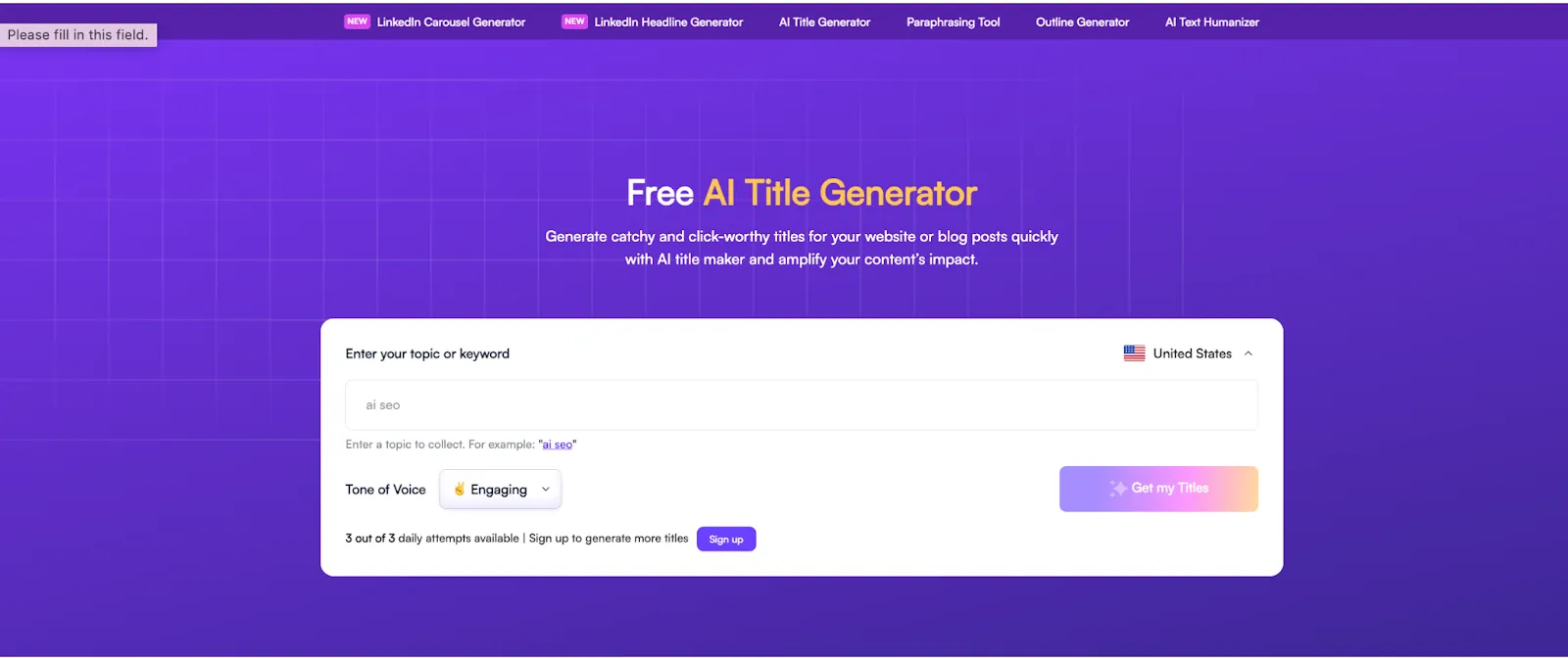 Some tools only ask for a topic or keyword, and then give you the same recycled suggestions everyone else is using. If you care about getting people to actually click, look for a tool that: