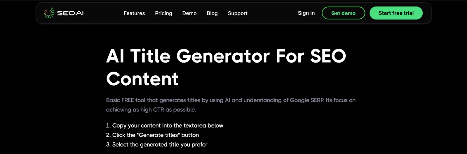 SEO.ai’s title generator focuses on one specific thing: helping you write titles that get more clicks on Google. It doesn’t try to be a general-purpose AI writing tool. Instead, it uses your full blog content to suggest titles based on what will work well on search engine results pages (SERPs).