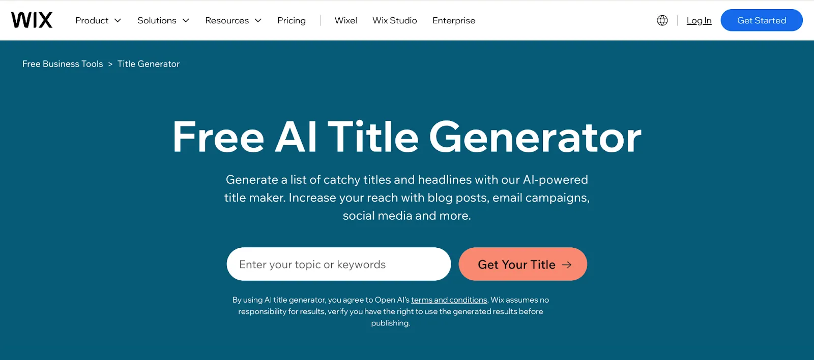 Wix’s AI Title Generator is a free tool that helps you create short, engaging titles without needing SEO knowledge or writing skills. It’s built for anyone looking to improve click-throughs on their content, whether you’re writing a blog post, launching a campaign, or posting on social media. You just enter your topic, and the tool gives you headline suggestions that are clear, catchy, and easy to copy or edit.