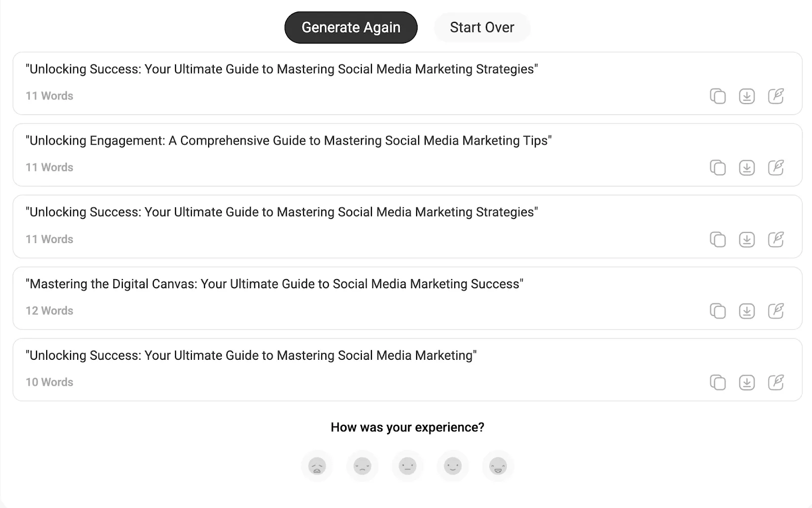 - Select and Refine Your Title: Pick the ones you like and save them to your content calendar or spreadsheet. You can also copy and paste them directly into your drafts.