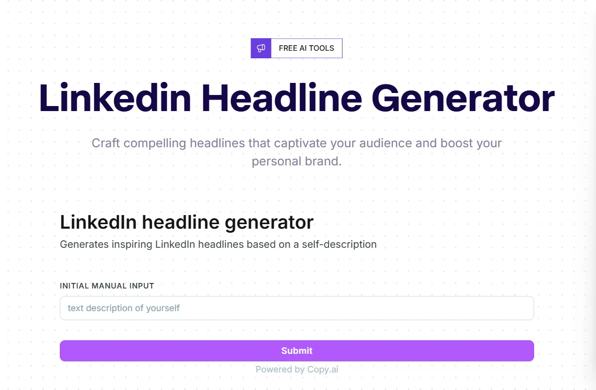 There are additional LinkedIn-related templates available from Copy AI, such as their free LinkedIn headline generator.