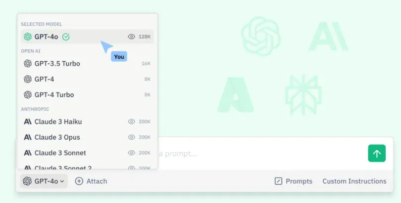 This means that your team can use more than one AI model at once, easily switching between them within a single chat, meaning no multiple tabs, chats, or subscriptions.