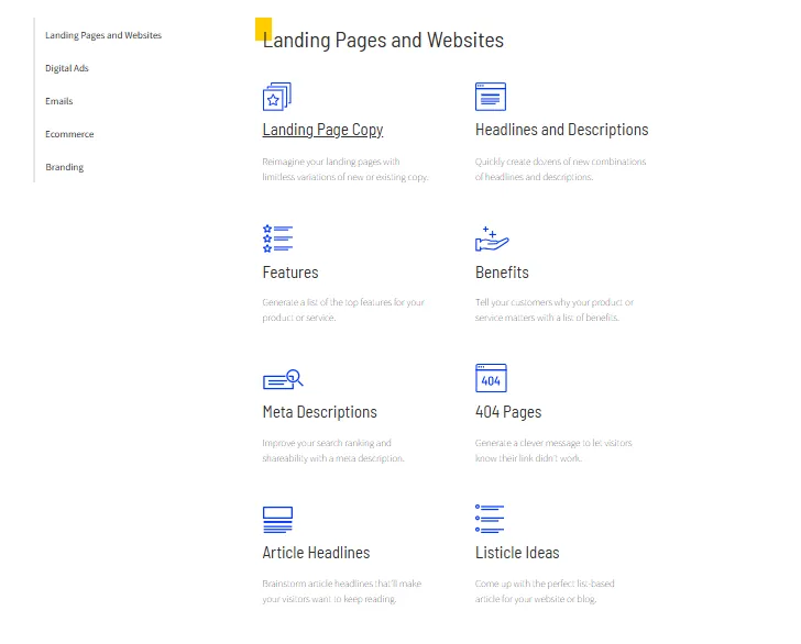 - 50+ available tools for creating all kinds of content, from ad copy to entire blogs.