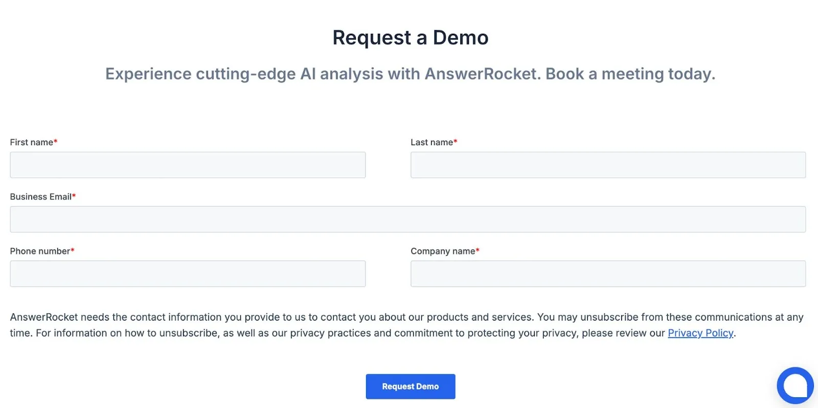 To try AnswerRocket’s features for data analytics you have to first book a demo by contacting their sales team.