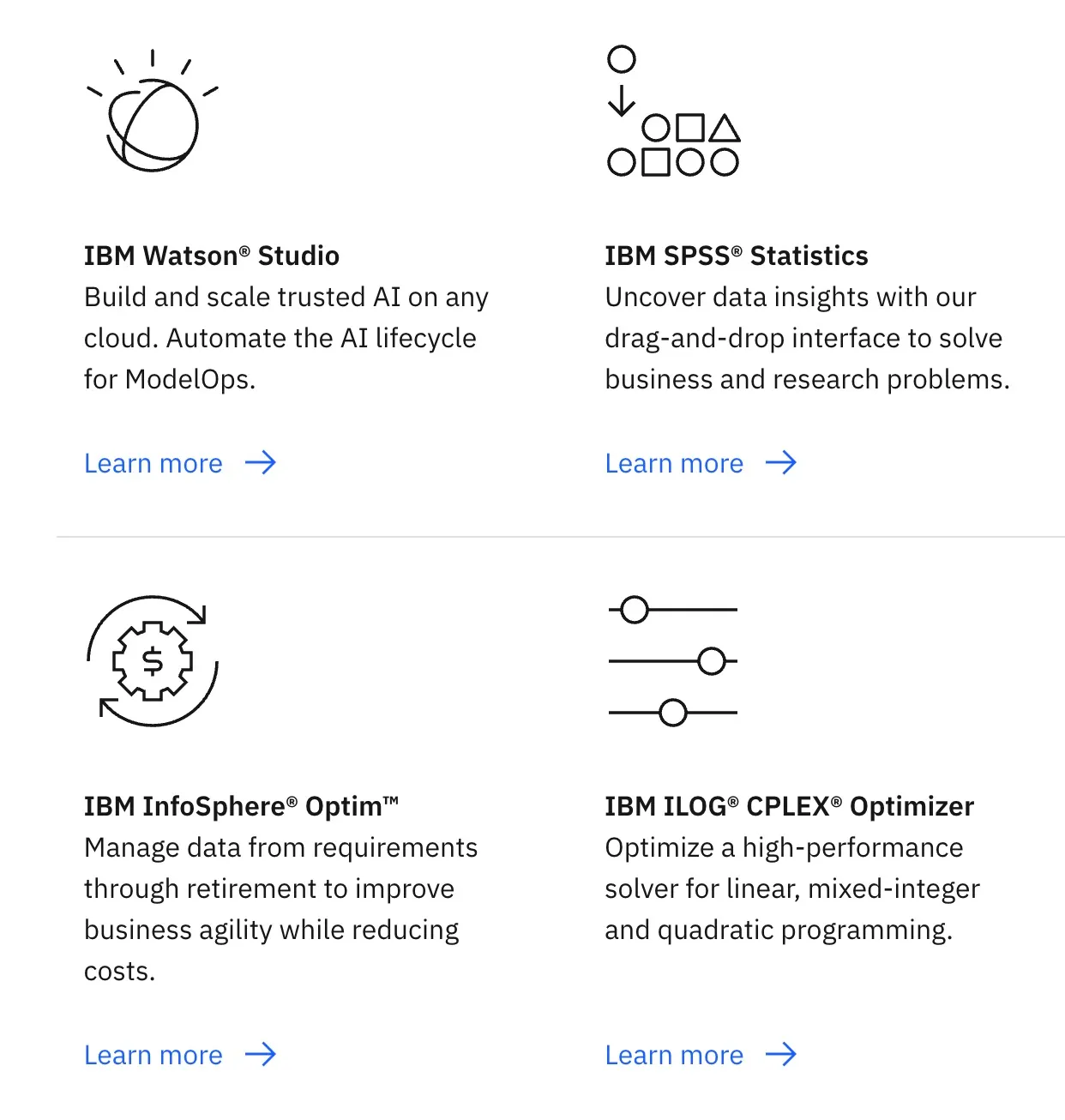 IBM Watson Analytics is a suite of AI-powered tools designed to help small to large organizations gain a deeper understanding of their data sets.