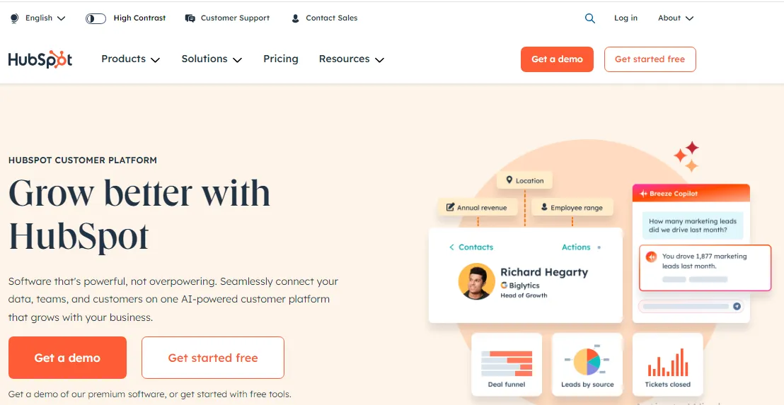 - Lead management: Hubspot captures and organizes leads, ranks them based on importance, and assigns them to team members.