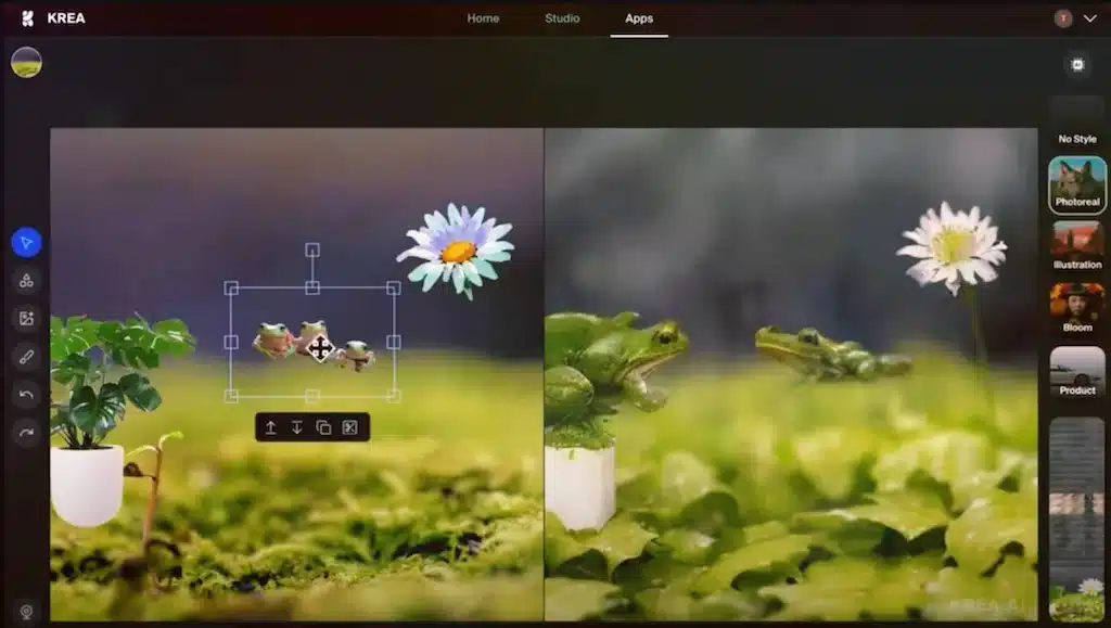 Krea AI offers real-time AI image generation and enhancement tools, allowing users to see images update instantly as they modify prompts or sketches.