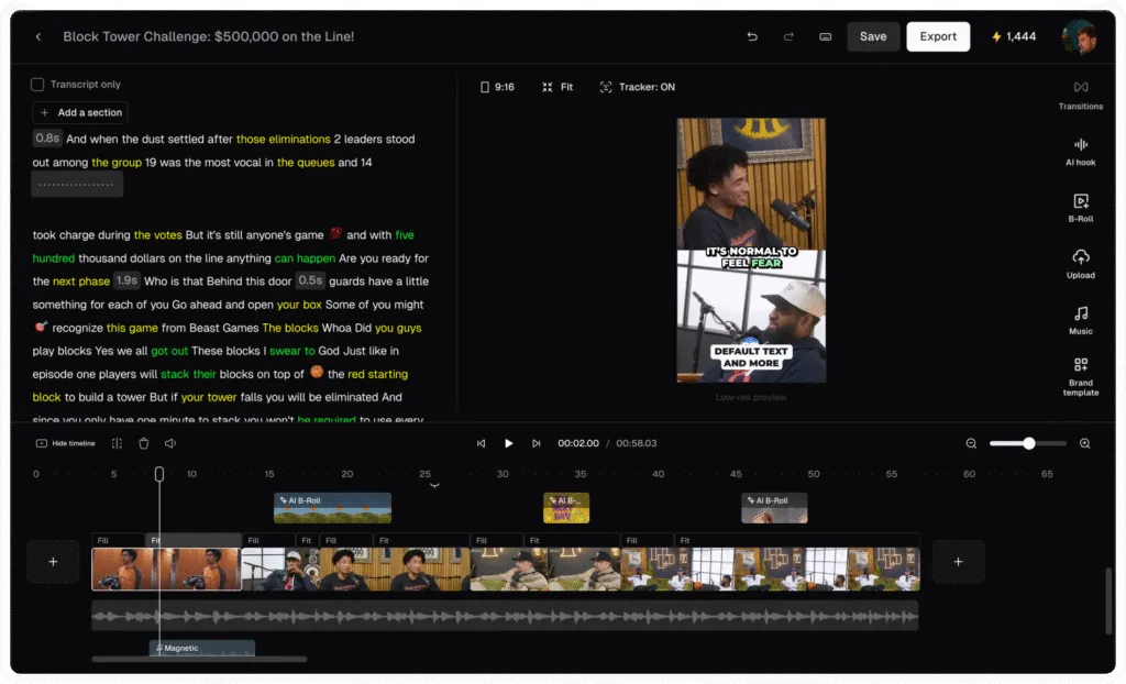 - AI Clip Detection: Automatically identifies engaging moments in long-form content