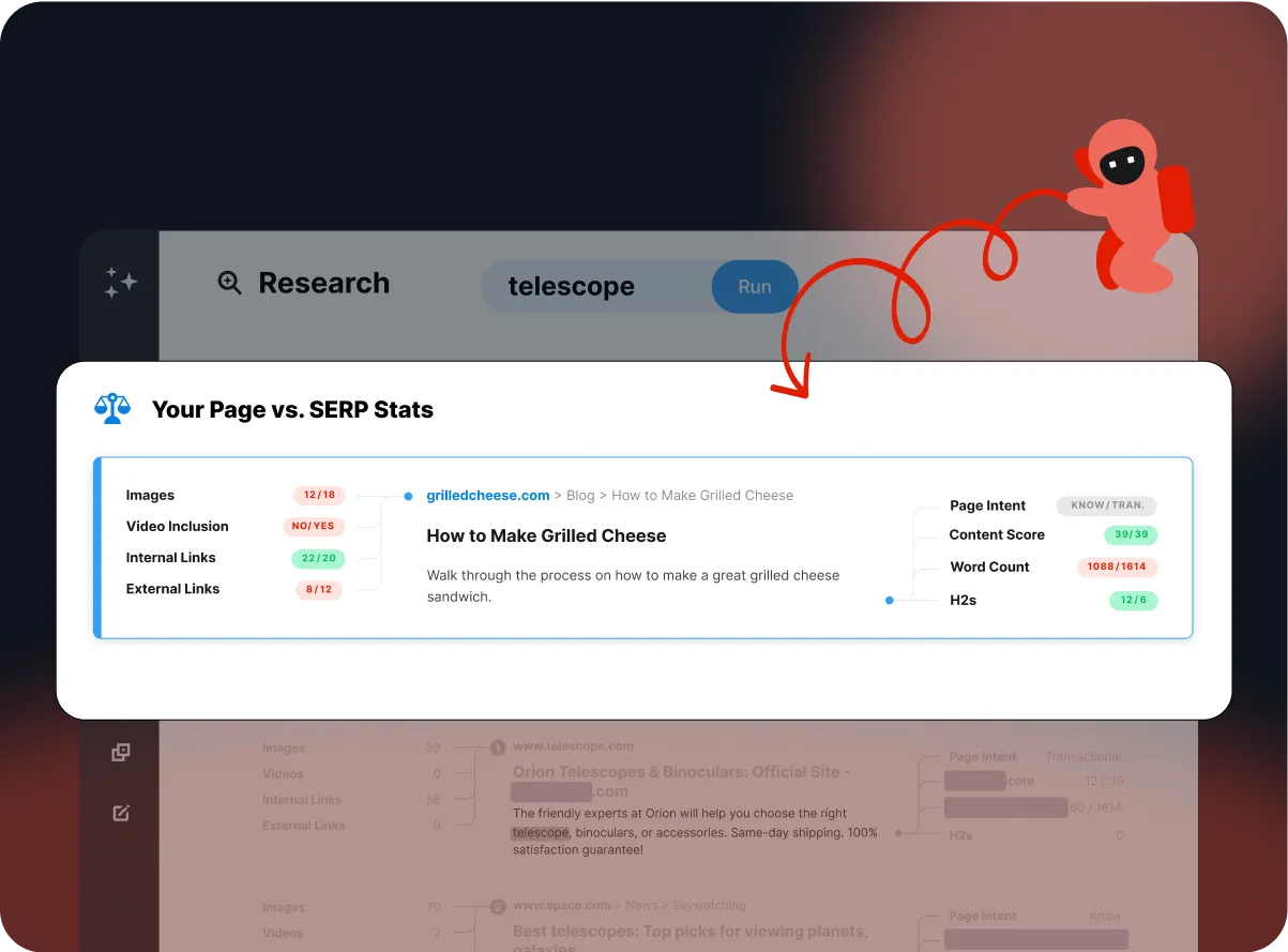 Surfer SEO lets you uncover opportunities in your existing content and stay ahead of your competitors.