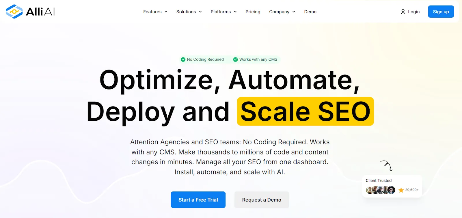 Alli AI is an AI-fuelled SEO software that lets you make code and content changes in minutes without coding skills.