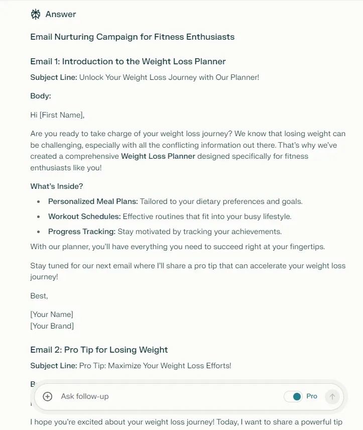 I put detailed explanations of what my email campaign should look like, who I am trying to target, and what my product is about to see what level of output I get: