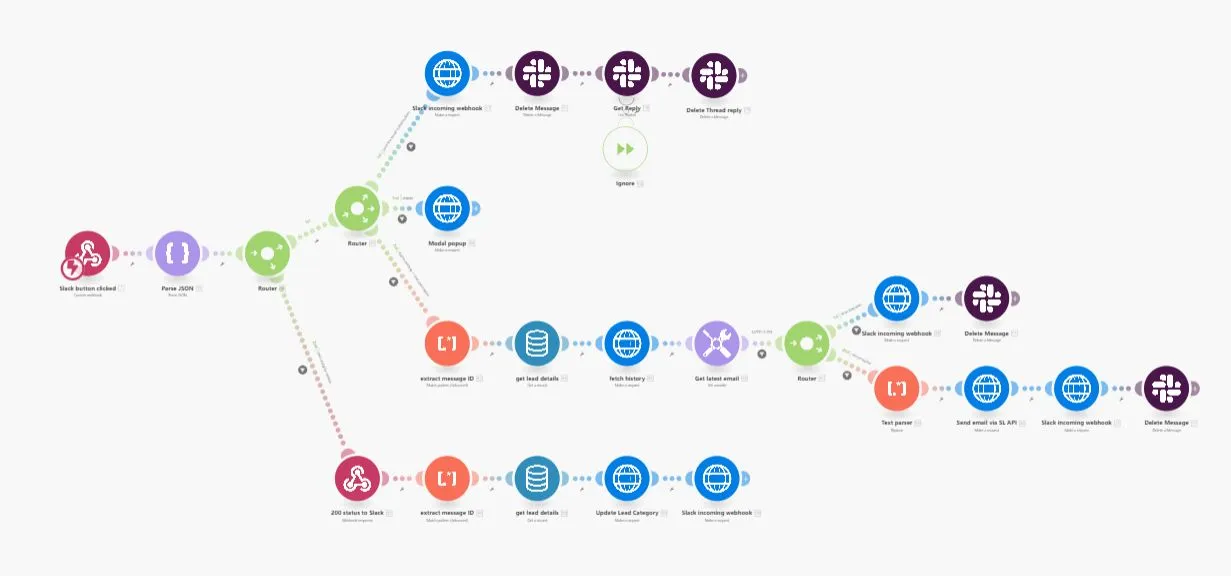 💡 Sam built this automation in Make, which sends all interested replies from Smartlead to Slack and has ChatGPT draft a response to the lead.