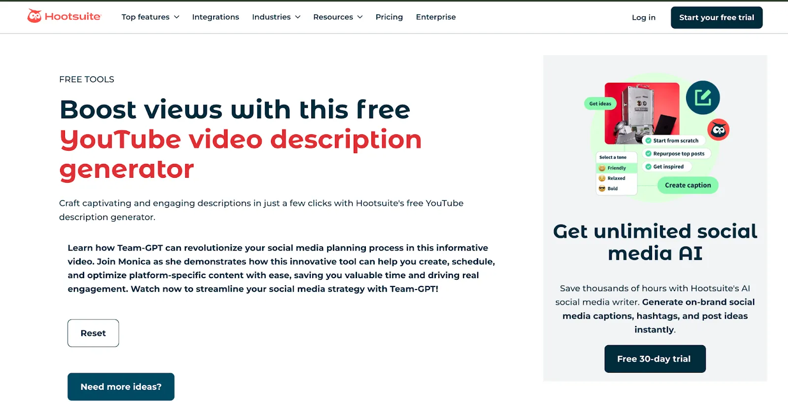 Here’s how you can use Hootsuite’s YouTube Description Generator:
