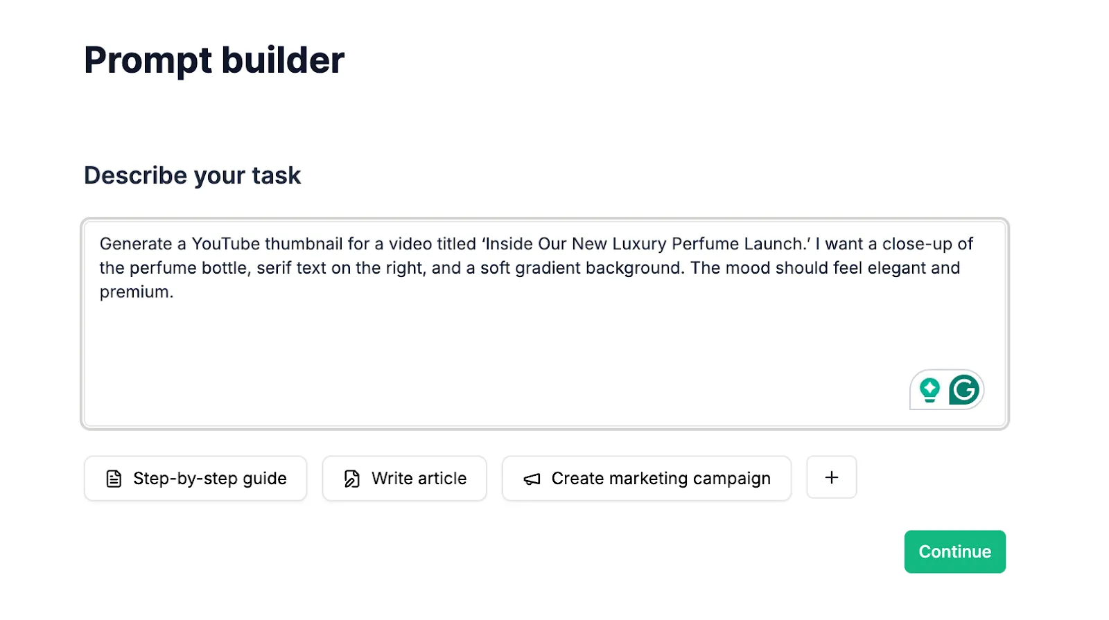 I open the Prompt Builder and start by describing what I need: