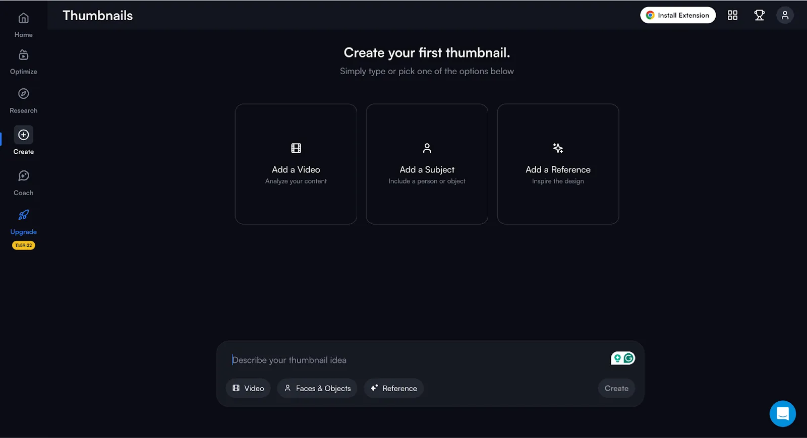 - Enter a Prompt or Upload an Image: I start by describing the kind of thumbnail I want, or I upload a picture from my computer.
