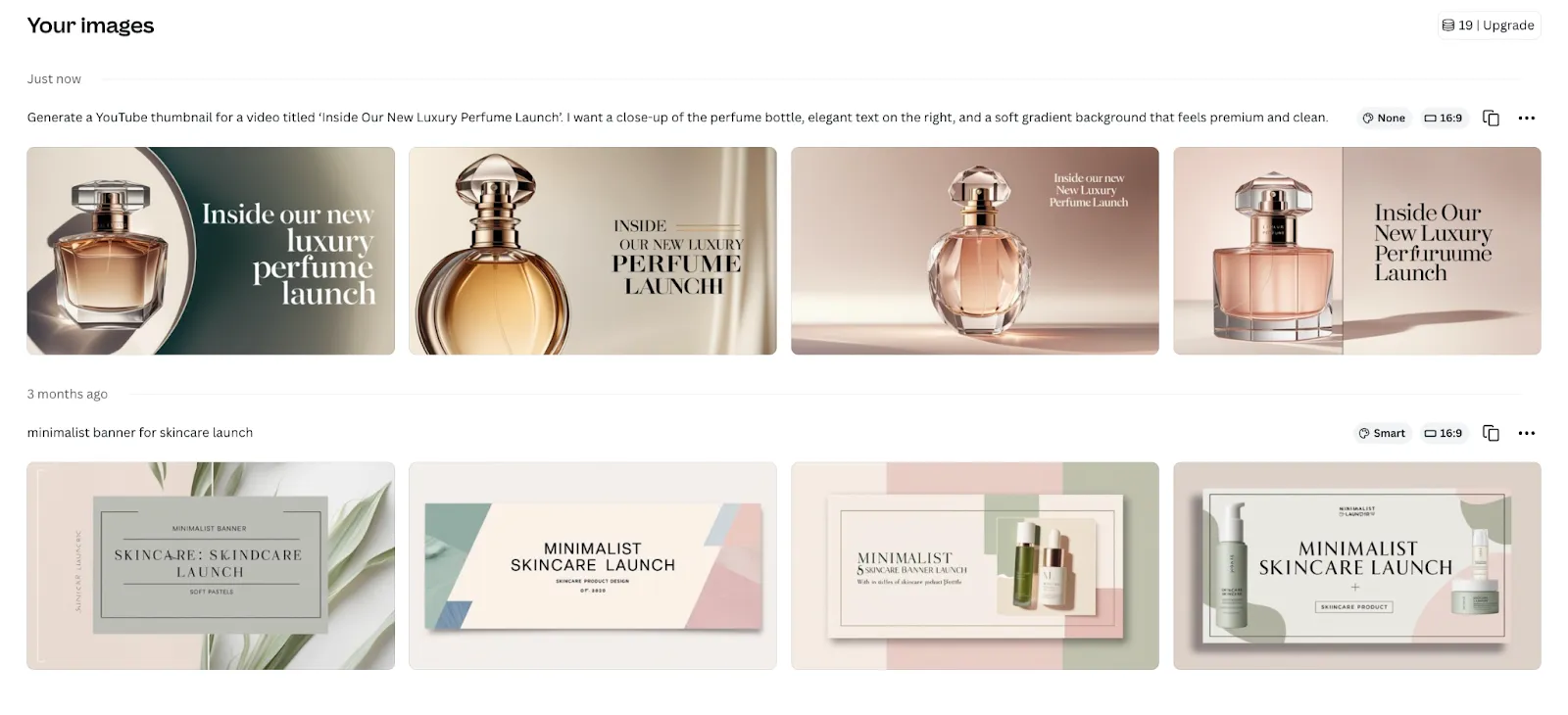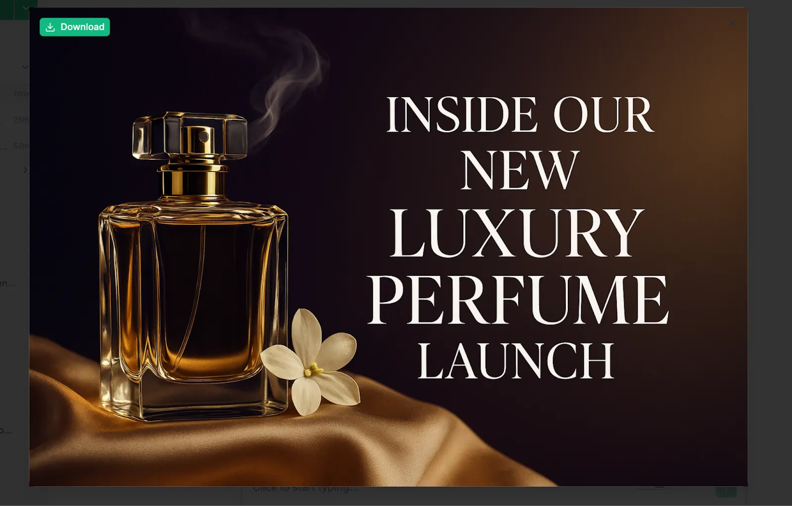“I need a YouTube thumbnail idea for a video titled ‘Inside Our New Luxury Perfume Launch.’ I want a close-up of the perfume bottle, serif text on the right, and a soft gradient background. The mood should feel elegant and premium.”