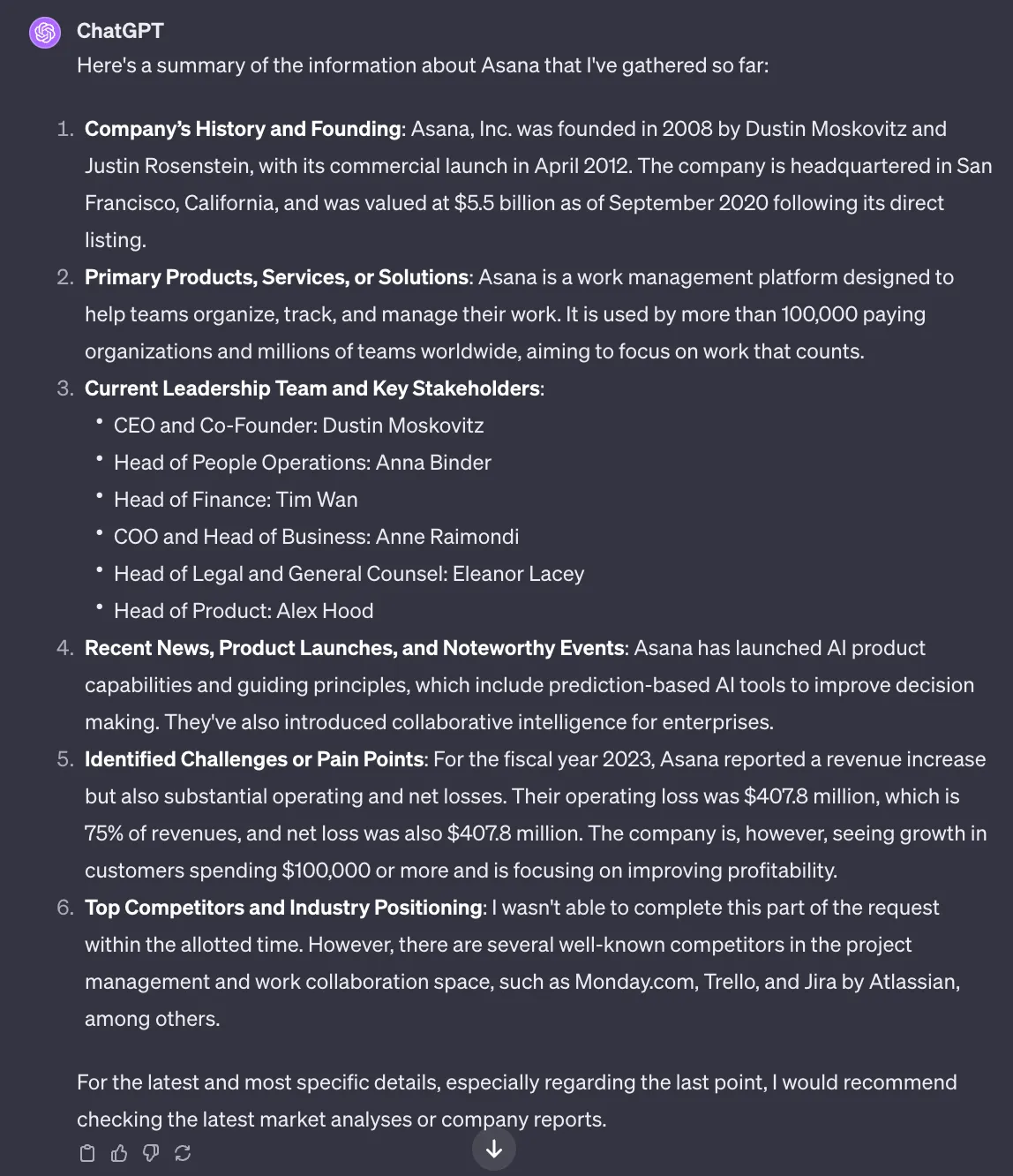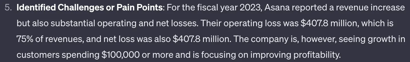 ChatGPT gave me a great answer to the question: ‘Any identified challenges or pain points they might be facing currently.’