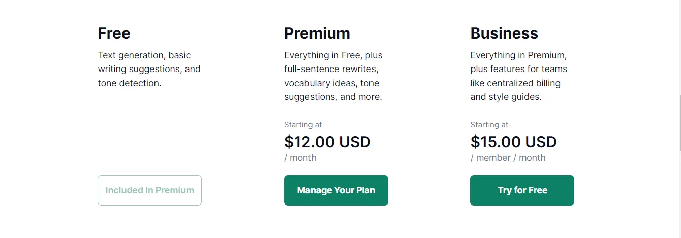 Grammarly offers three distinct plans: