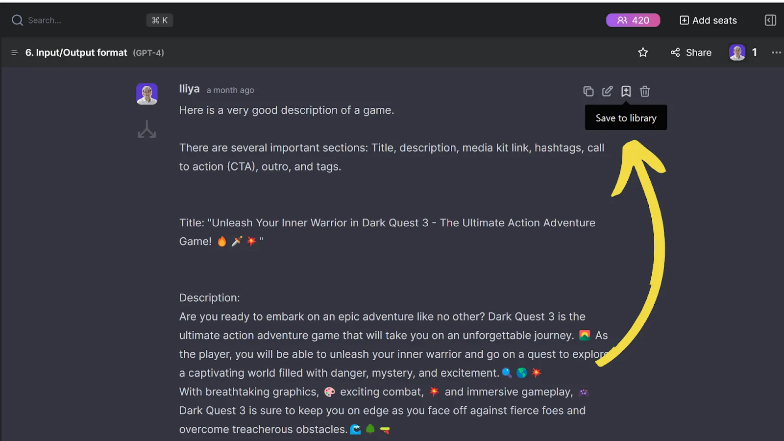 It also encourages documentation. Worked for 10 mins to craft the perfect prompt? Save it to the library, so you or your teammates can reuse it later! Building your own prompt library will reduce repetitive tasks and foster a best-practice culture so your team can simplify their work activities into efficient, result-oriented processes.