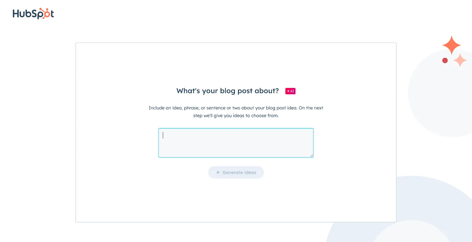Best for: Marketers and content teams who already use HubSpot and want blog ideas with keyword support and publishing features.