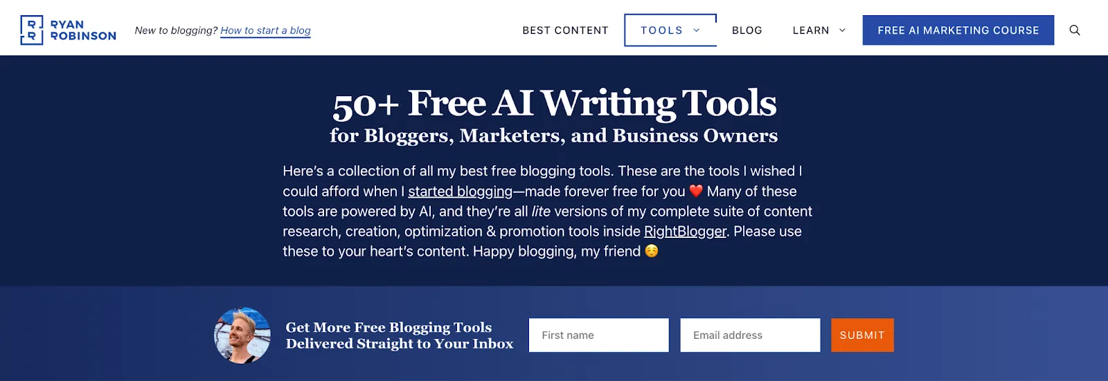 RyRob offers one of the simplest and most practical blog post idea generators in 2025. If you’re stuck on what to write, this tool gives you clear, structured ideas in seconds. Unlike many tools that throw random titles into templates, RyRob’s generator is powered by AI to create ideas that actually make sense.