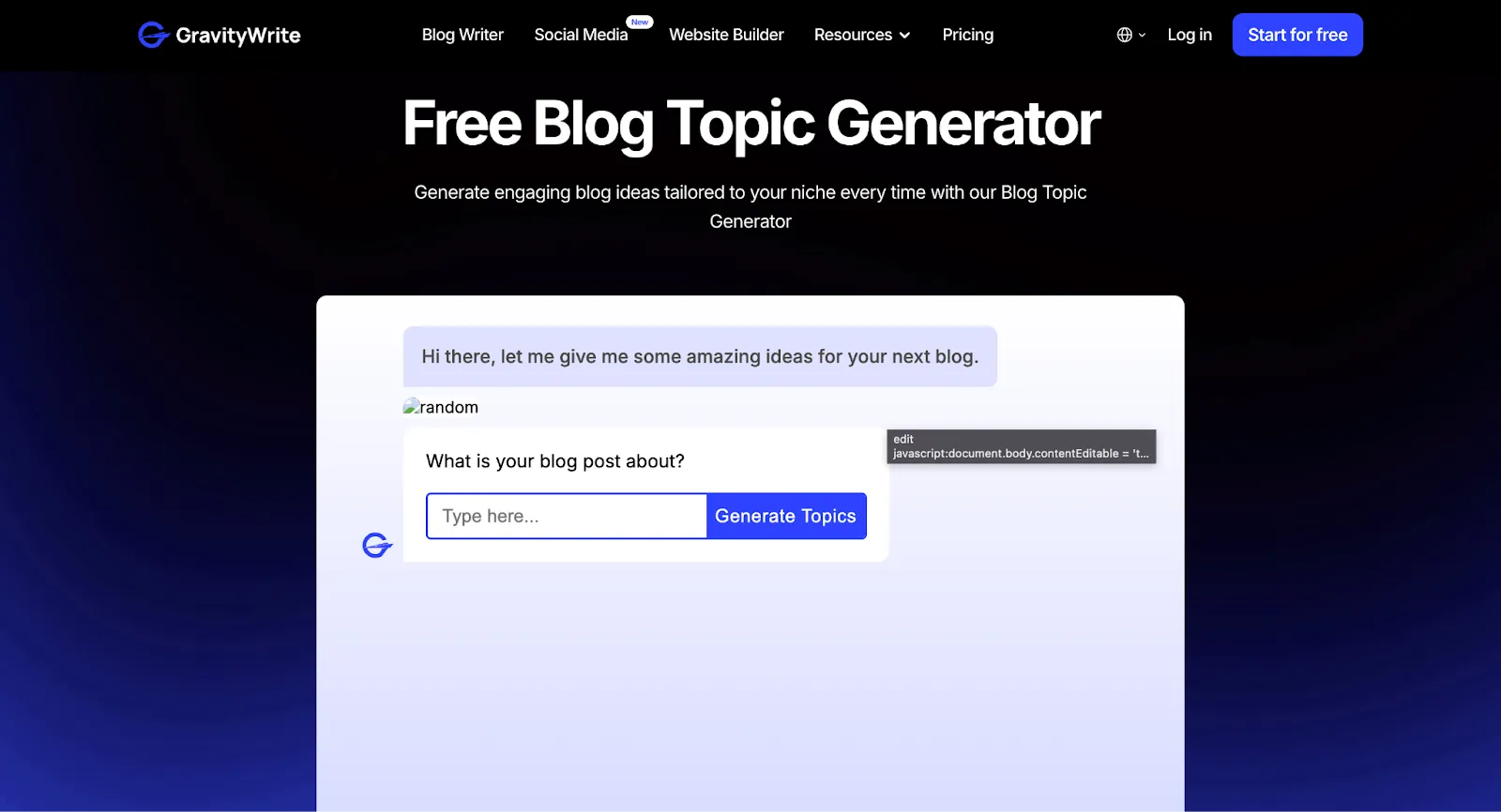Best for: Content marketers and social media managers who want quick blog topic ideas with minimal input.