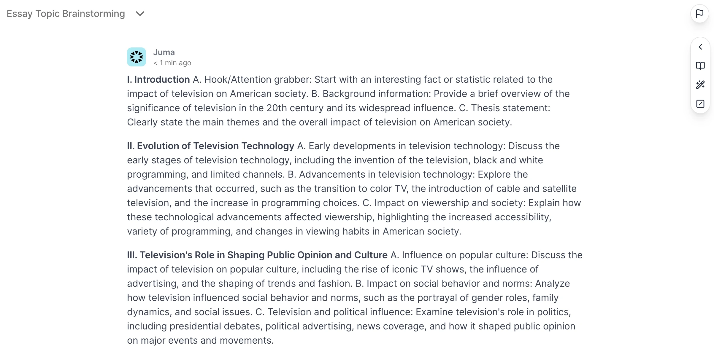 For instance, I used the below prompt to generate an outline for my essay.