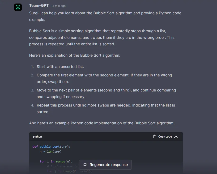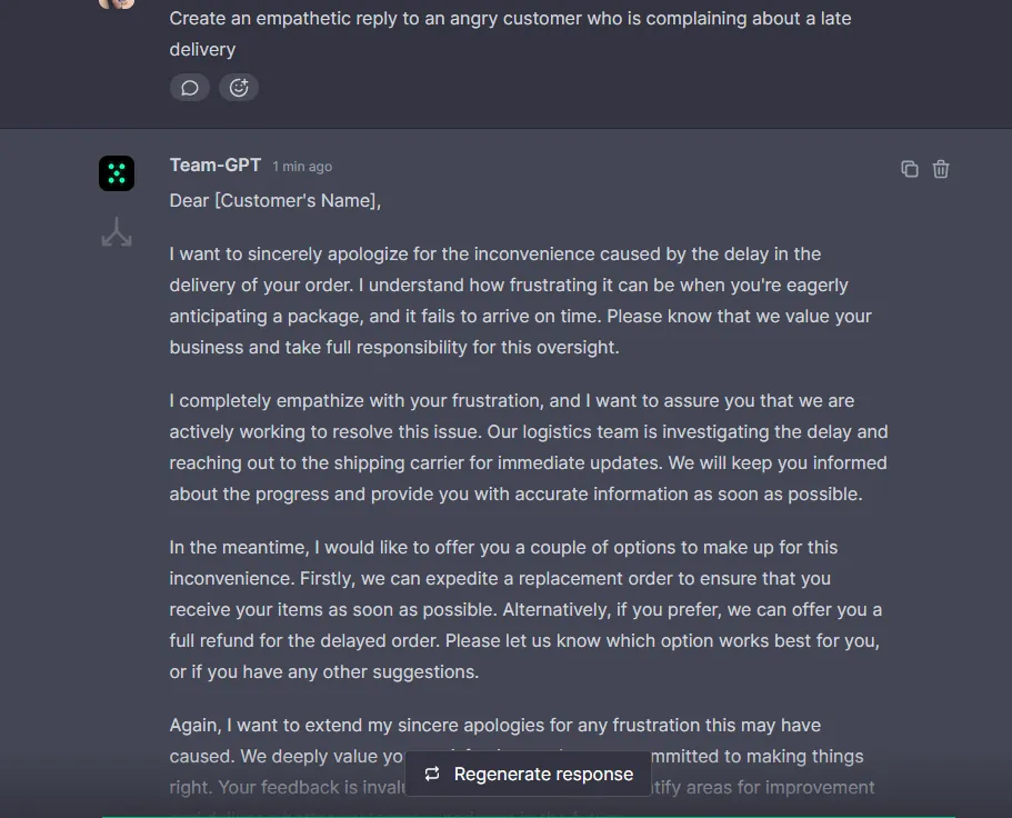 For example, here’s how you can generate human-like article content with Team-GPT alongside your team: