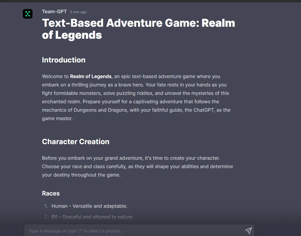 Yes, ChatGPT also excels in the role-playing game genre, namely the famous Dungeons and Dragons. You can create a unique text-based adventure with the AI chatbot, complete with all the works but, of course, you’ll need a really detailed prompt. Just like the one u/RamiBlack, another Reddit user came up with.