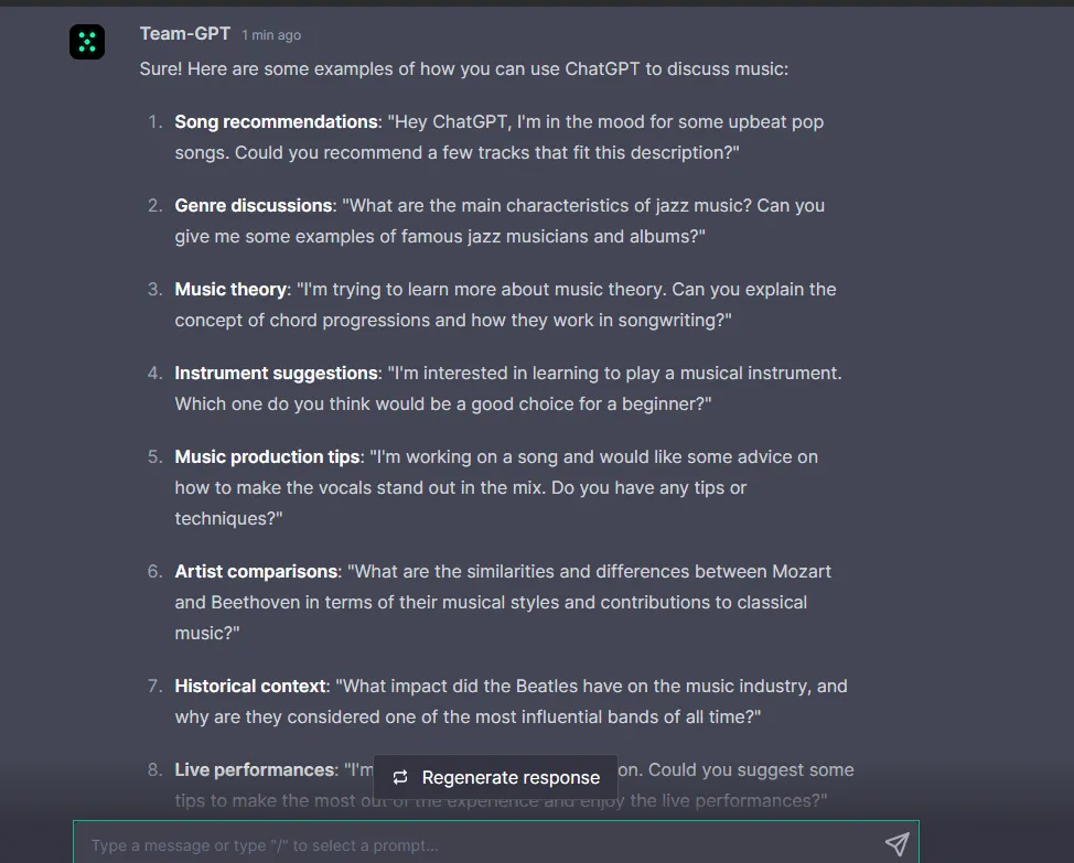 ChatGPT can help you learn about concepts like music theory, help you discover the historical context of songs, or even suggest instruments that should suit you. Let’s take a look at some of the top ChatGPT examples for music.