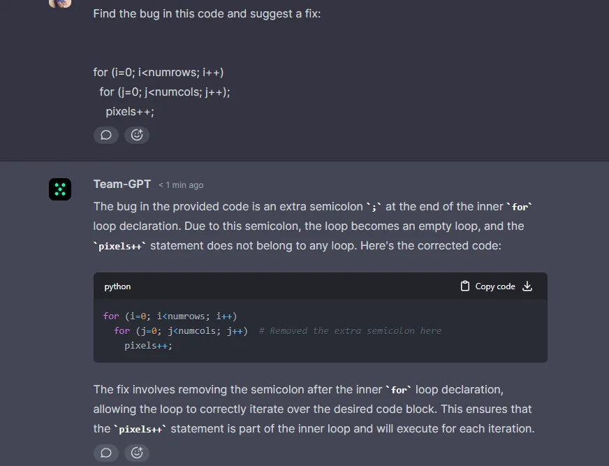 Thanks to ChatGPT, you don’t have to create a code snippet manually (leave that to the cavemen). The language model can create snippets from extensive lines of code, whether you’re looking to debug/ troubleshoot, share and collaborate with other programmers, or prepare documentation.
