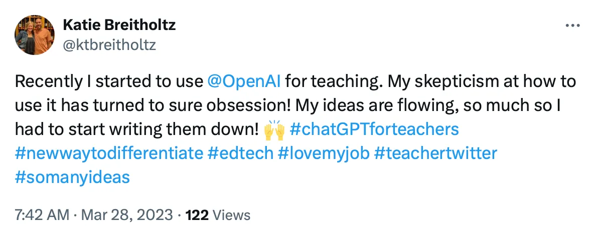 Kair Breitholtz, a school teacher from North Carolina, recently shared her view on using AI for teaching.