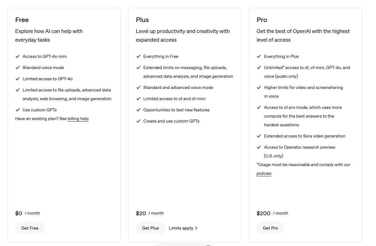 And if you’re looking for unlimited access to ChatGPT’s o1, o1-mini, GPT-4o, and voice, you’d need to be on their Pro plan that costs $200/month and adds: