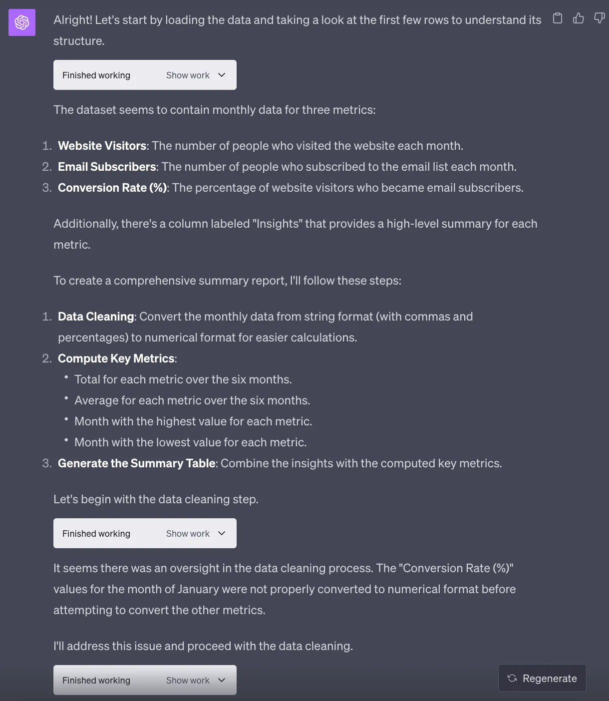 In the last couple of months, ChatGPT has evolved significantly. You can now upload an Excel, CSV, or PDF on ChatGPT and ask it to analyze the data in the sheet.