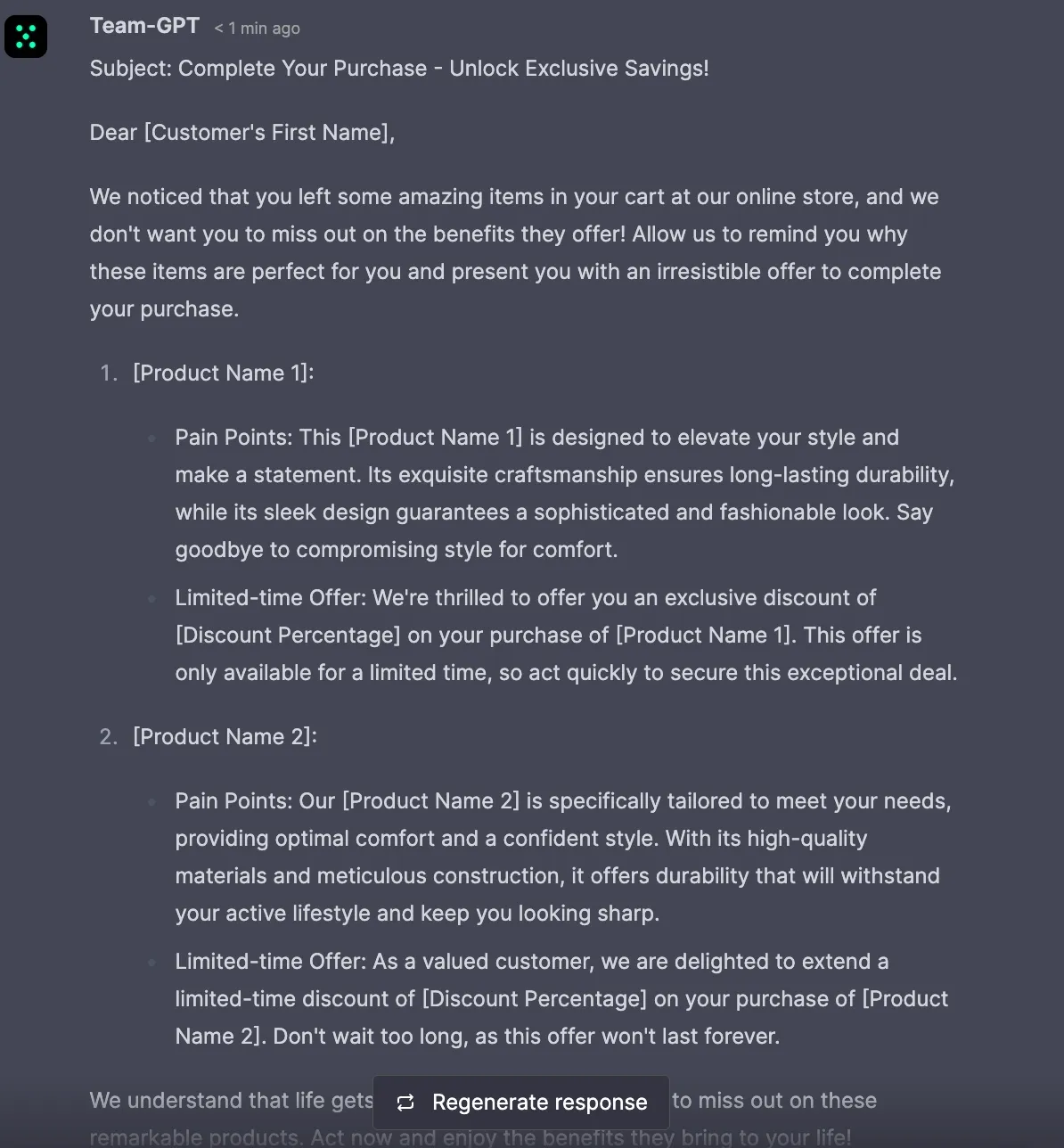 I want you to craft an email for my cart abandoners and follow these instructions: