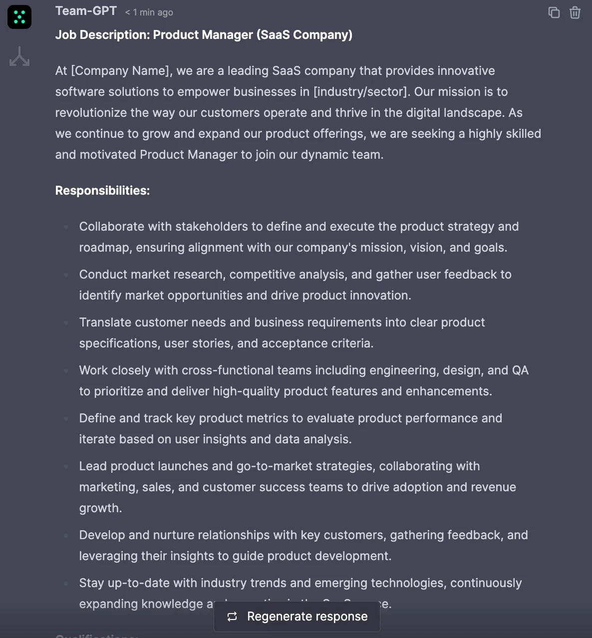 Give sample job descriptions to ChatGPT and tell it to spin a version of its own. By giving guidelines on how and what exactly you need for your JD, ChatGPT can do a pretty good job preparing first drafts.