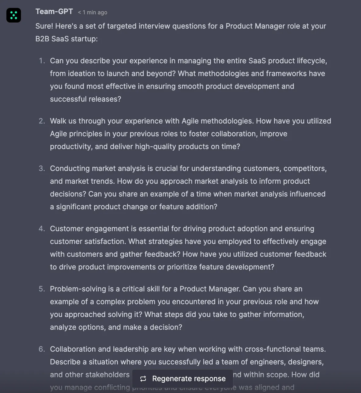 Instruct ChatGPT to generate interview questions relevant to the role you’re hiring for. Tell the AI what skill you want to test and see what ChatGPT comes up with.