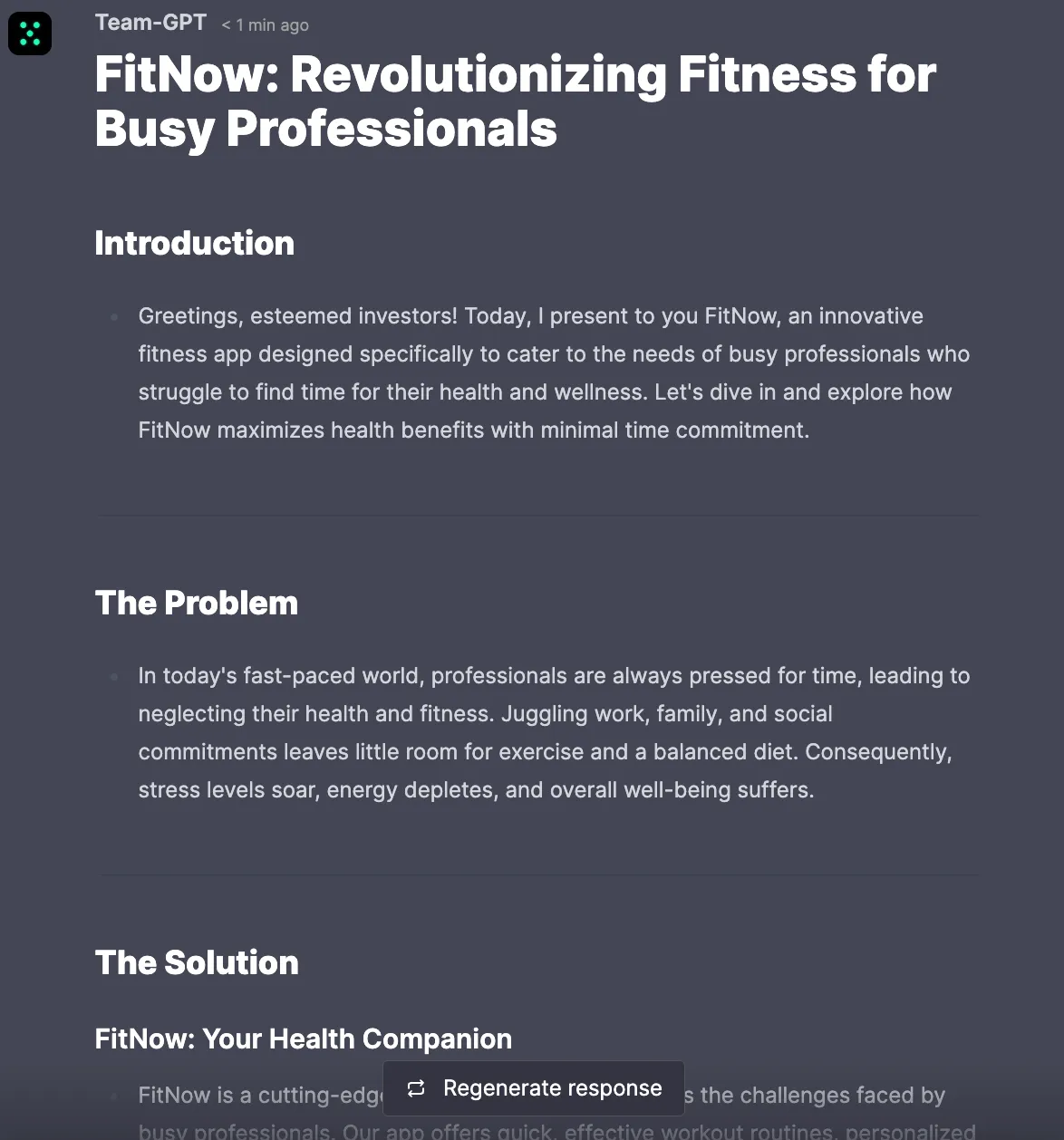 Goal: Create a pitch deck for an innovative fitness app targeting busy professionals.