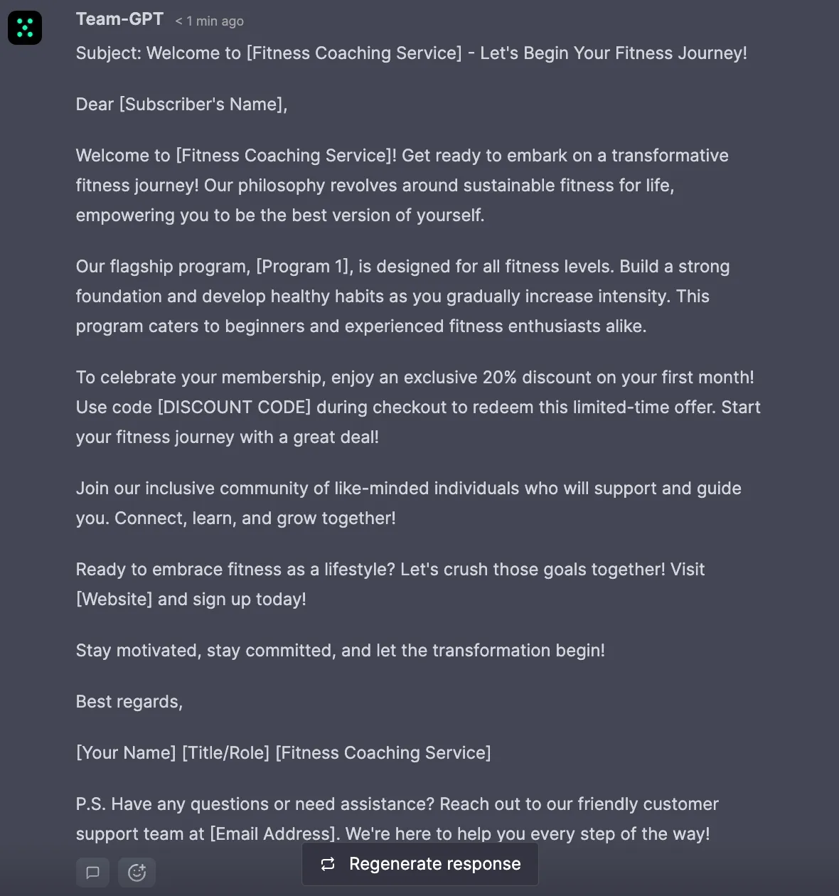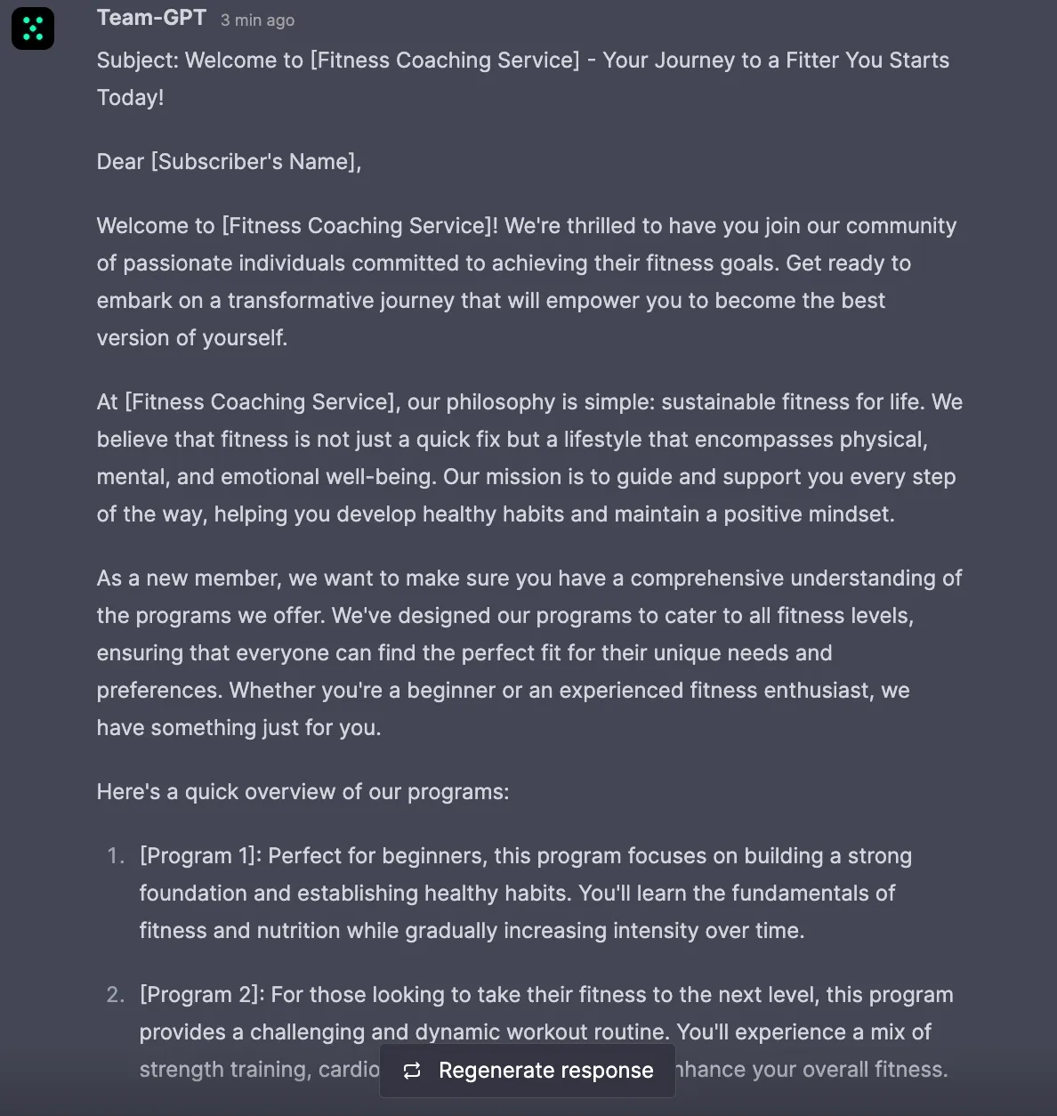 Goal: Write a welcome email sequence for new subscribers to a fitness coaching service.