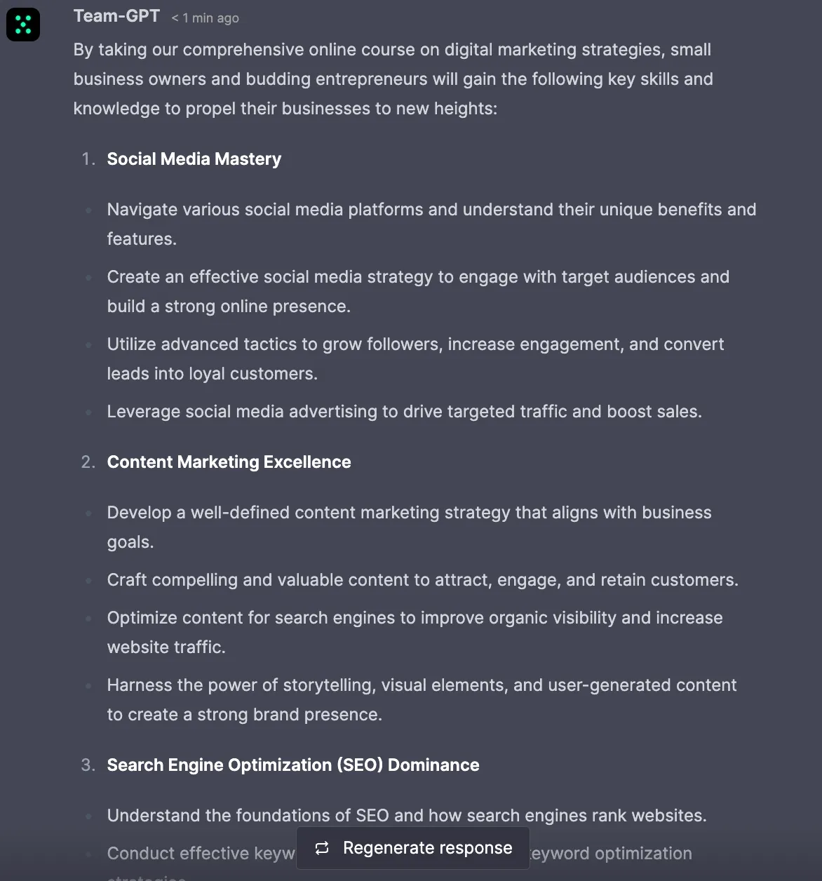 Unlike many other tools, ChatGPT can effectively communicate the learning outcomes of your course. It can articulate complex educational concepts in an easy-to-understand manner, highlighting the value proposition of your course.