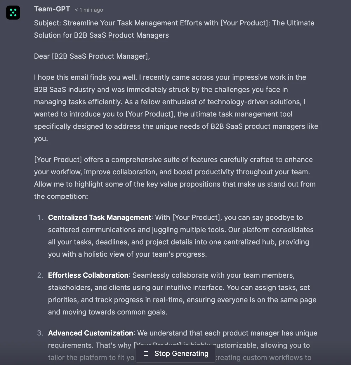 With ChatGPT, you can create customized email sequences for different segments of your audience. This personalization can lead to higher engagement rates as the content is more relevant to each recipient.