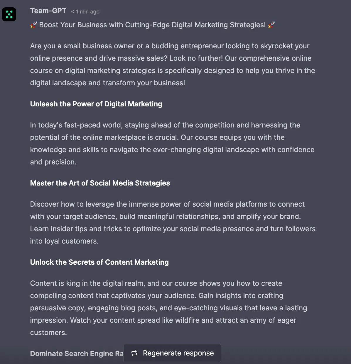 ChatGPT is adept at adjusting its language to match the educational context. It can seamlessly incorporate relevant jargon and maintain a tone that resonates with learners, which is crucial for course sales copy.