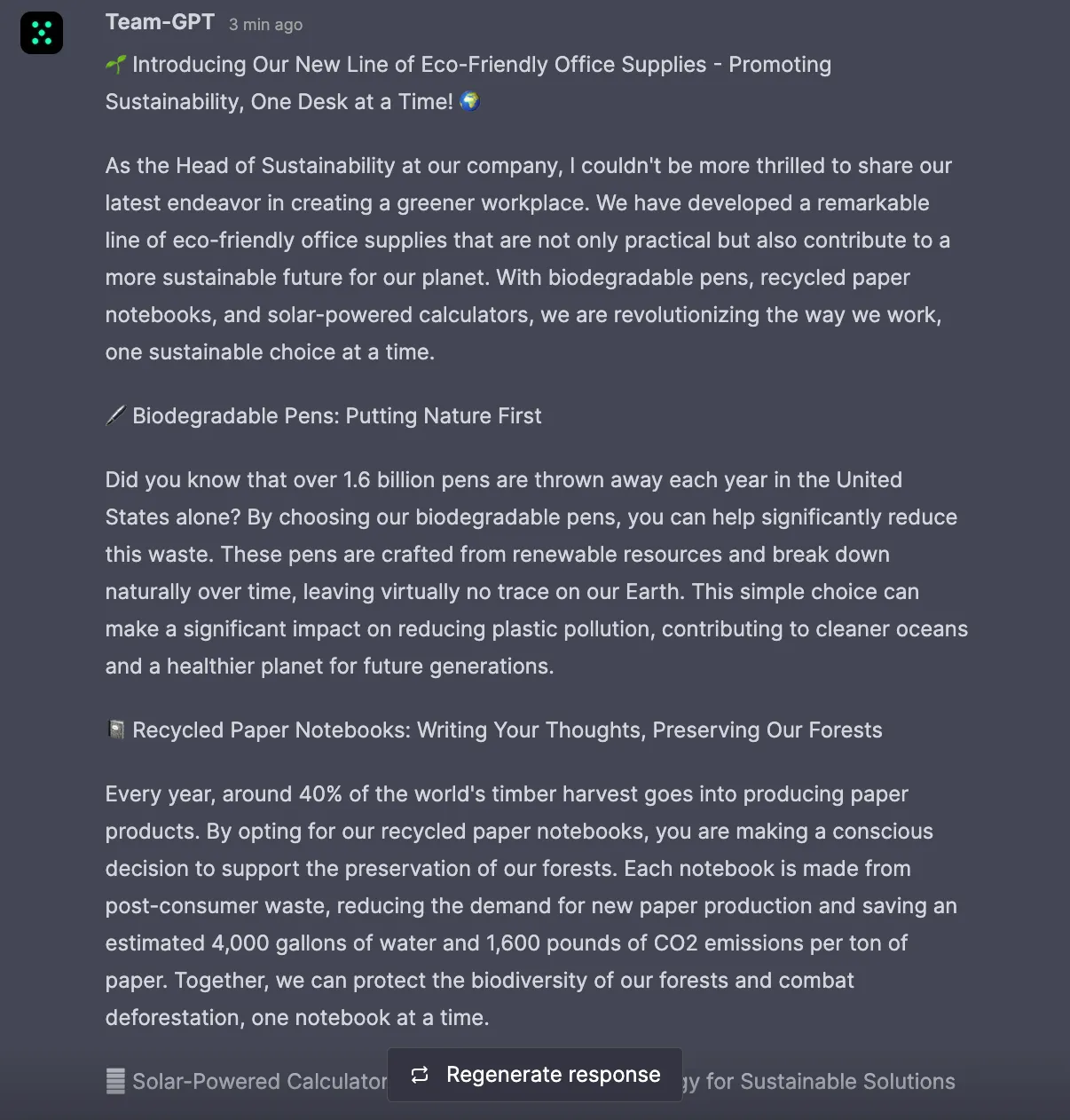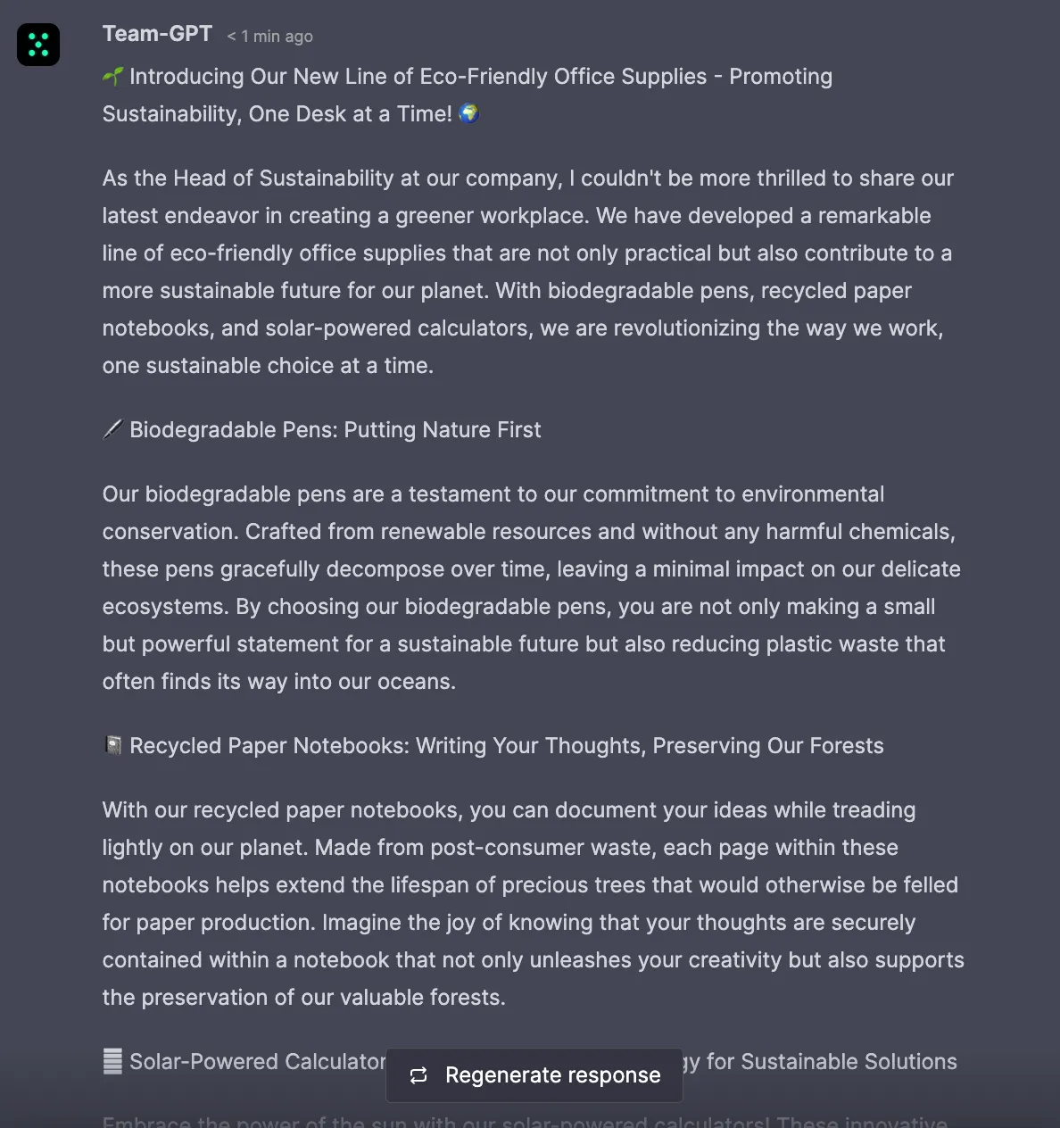 Thanks for the initial draft of the sales copy for our eco-friendly office supplies.