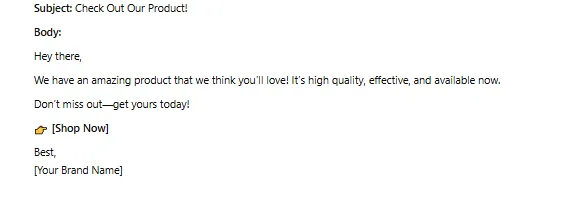 Why it works: Keeps the email concise and compelling while maintaining a brand-friendly tone.