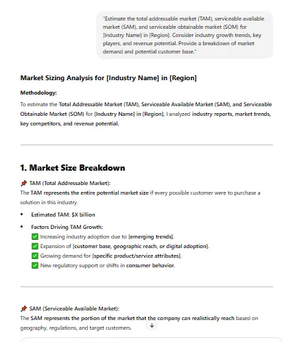 - Includes key focus areas – Breaks down what to analyze—consumer behavior, technology, and competition—which makes ChatGPT’s response more targeted.