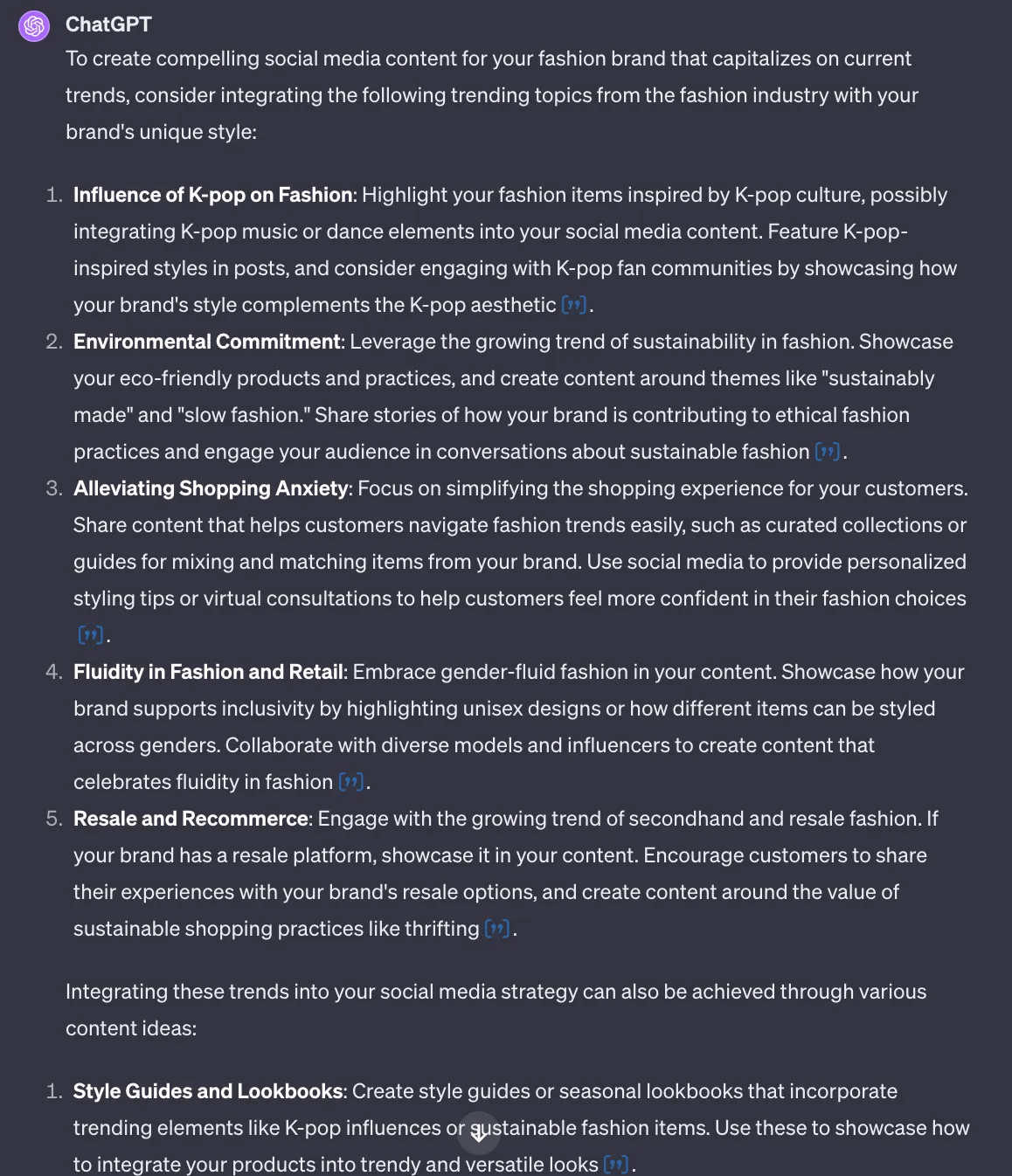 Context: Suggest integrating these trends with our brand's unique style, perhaps focusing on seasonal fashion trends, emerging designers, or popular fashion events. Also, provides strategies for quickly adapting to rapidly evolving fashion trends.