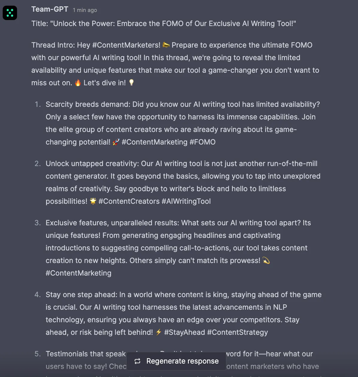 👀 Note: Although ChatGPT can provide the first draft of your FOMO-centric social media post, it’s wise to have a professional copywriter edit it for you.