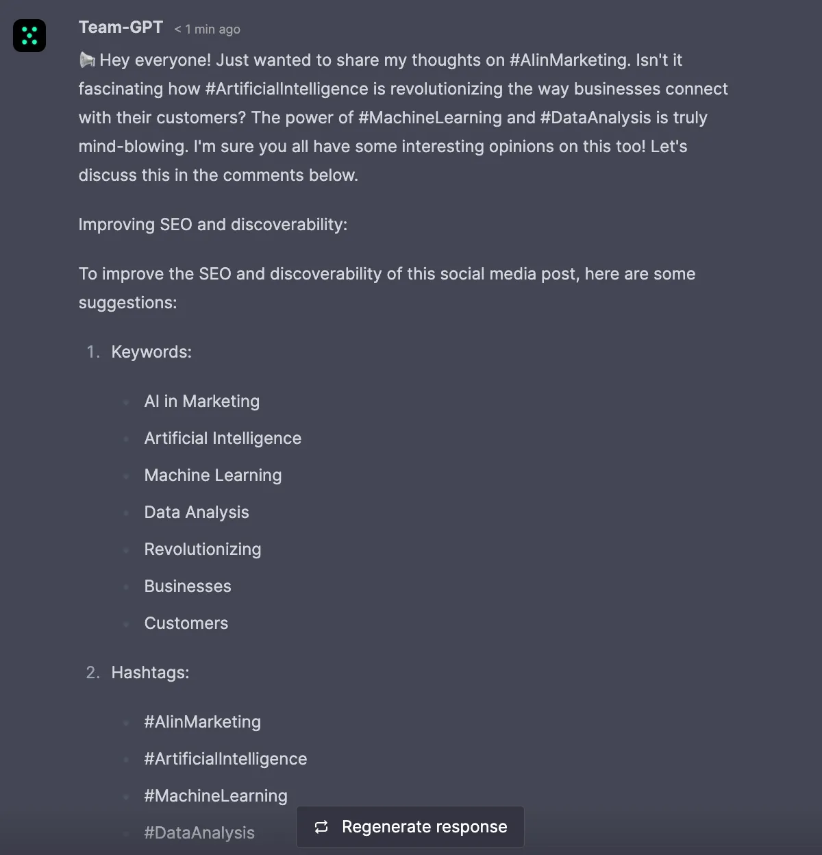 First, ChatGPT optimizes your post with the latest trends, events, and compelling CTAs resonating with the post content.