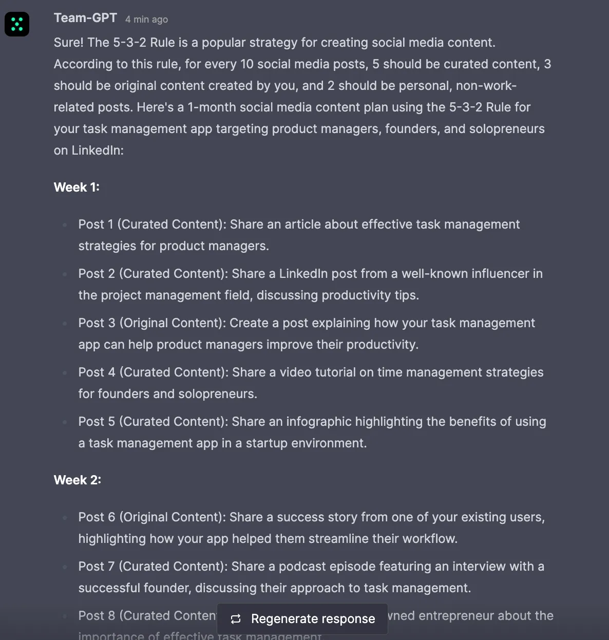 With the right follow-up prompts, you can generate post outlines and copy briefs for each post ahead of D-day.